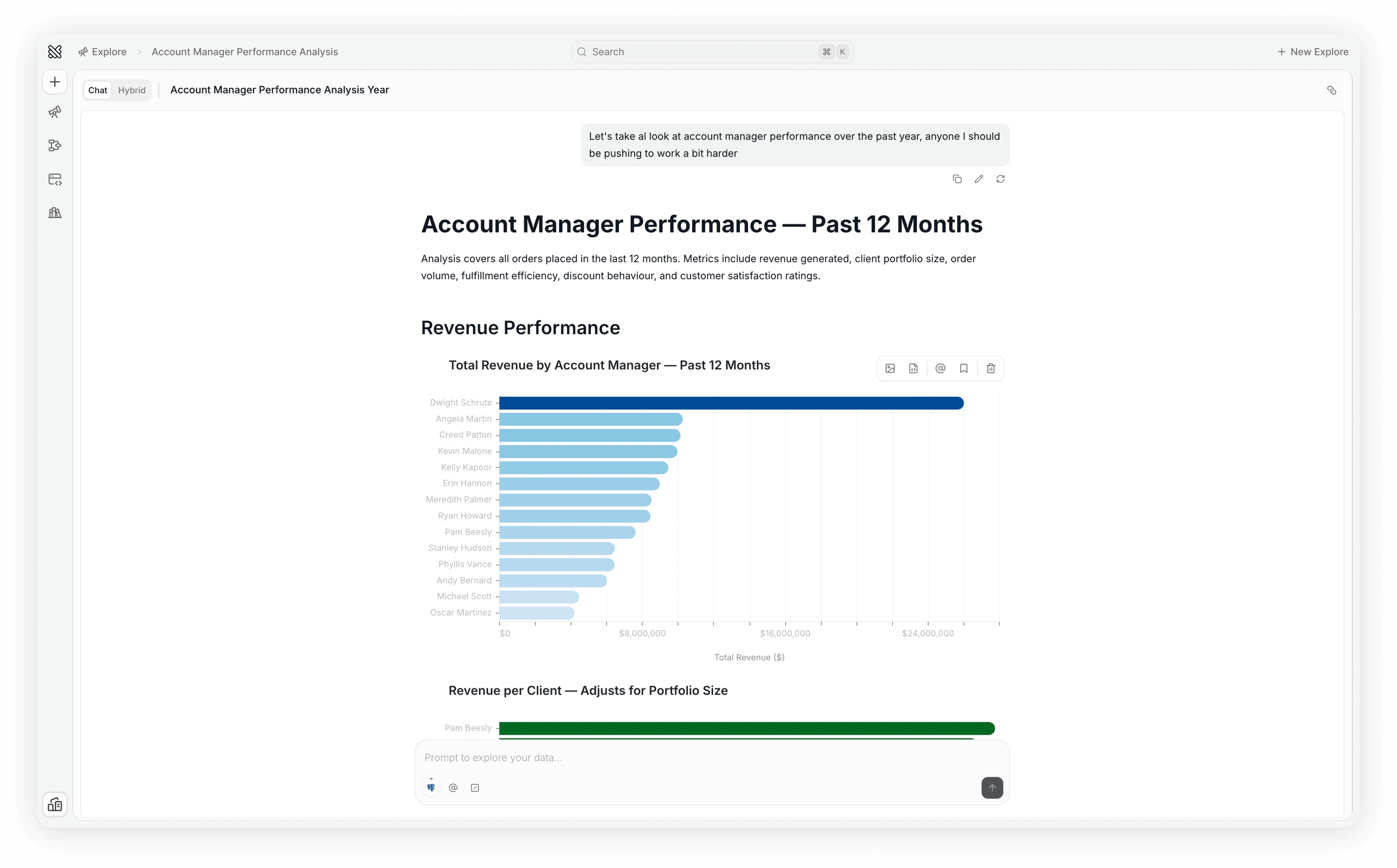 Empower your team and customers to self-serve analytics with AI, python notebooks, and context you trust.