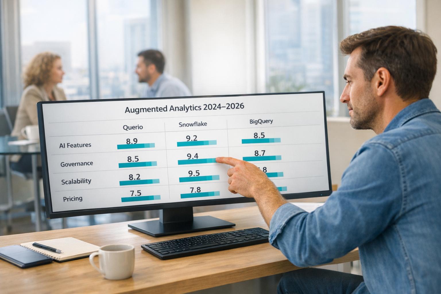 Compare Querio, Snowflake, and BigQuery across AI features, governance, scalability, and pricing to choose an augmented analytics platform that delivers ROI.