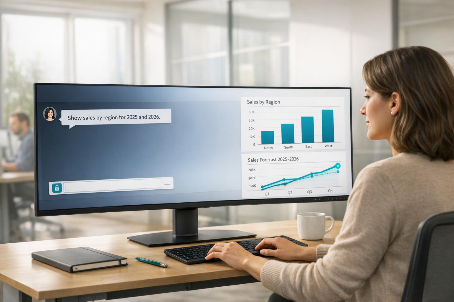 Natural-language AI that turns plain-English questions into secure, grounded visual analytics, streamlining analysis for all users.