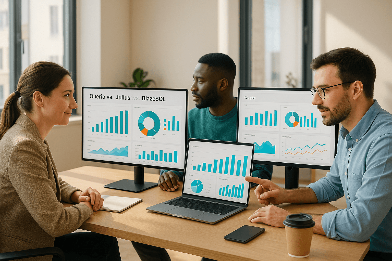 Querio is best for large organizations, Julius suits smaller teams, and BlazeSQL works well for mid-sized groups. Each platform addresses different needs, so choose based on your team size, technical requirements, and budget.