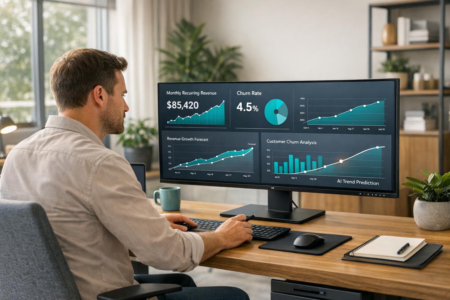 These tools also bring predictive insights into the mix. They can forecast key metrics like annual recurring revenue (ARR) or customer churn and even pinpoint the factors behind those predictions. This allows founders to make informed decisions about pricing, upselling, and retention strategies with confidence. On top of that, AI keeps an eye on your metrics 24/7, sending alerts about trends or unexpected changes - like a sudden drop in revenue - so you can respond quickly and effectively.