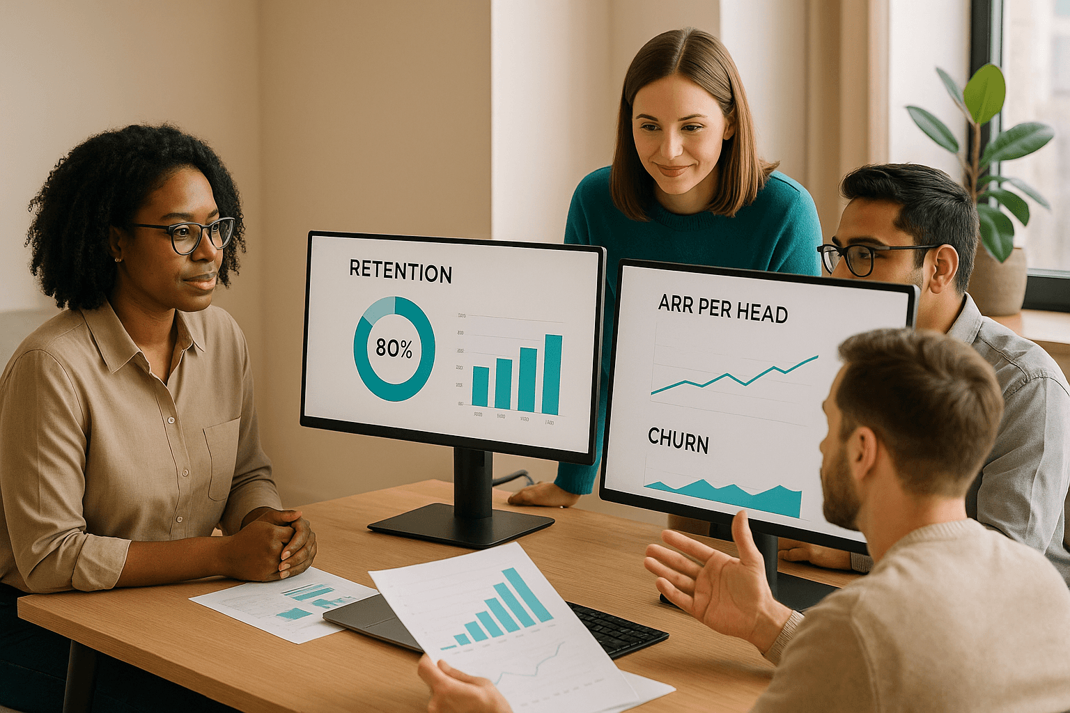 Discover effective strategies for tracking SaaS growth metrics like retention, ARR per head, and churn to scale your business efficiently.