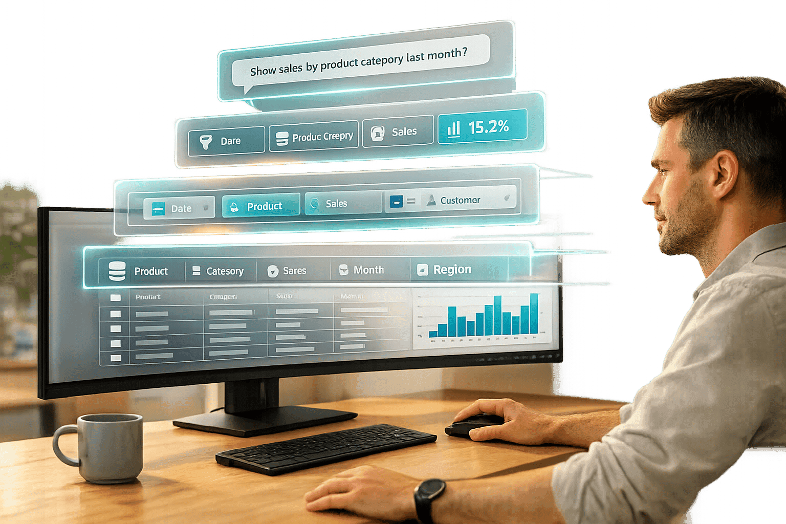 By querying the warehouse in real time, you avoid batch processing delays, extra storage costs, and potential security issues. The platform uses secure, read-only access, ensuring your source data remains untouched while still delivering up-to-date insights. This real-time connection forms the backbone for intuitive, AI-driven queries.