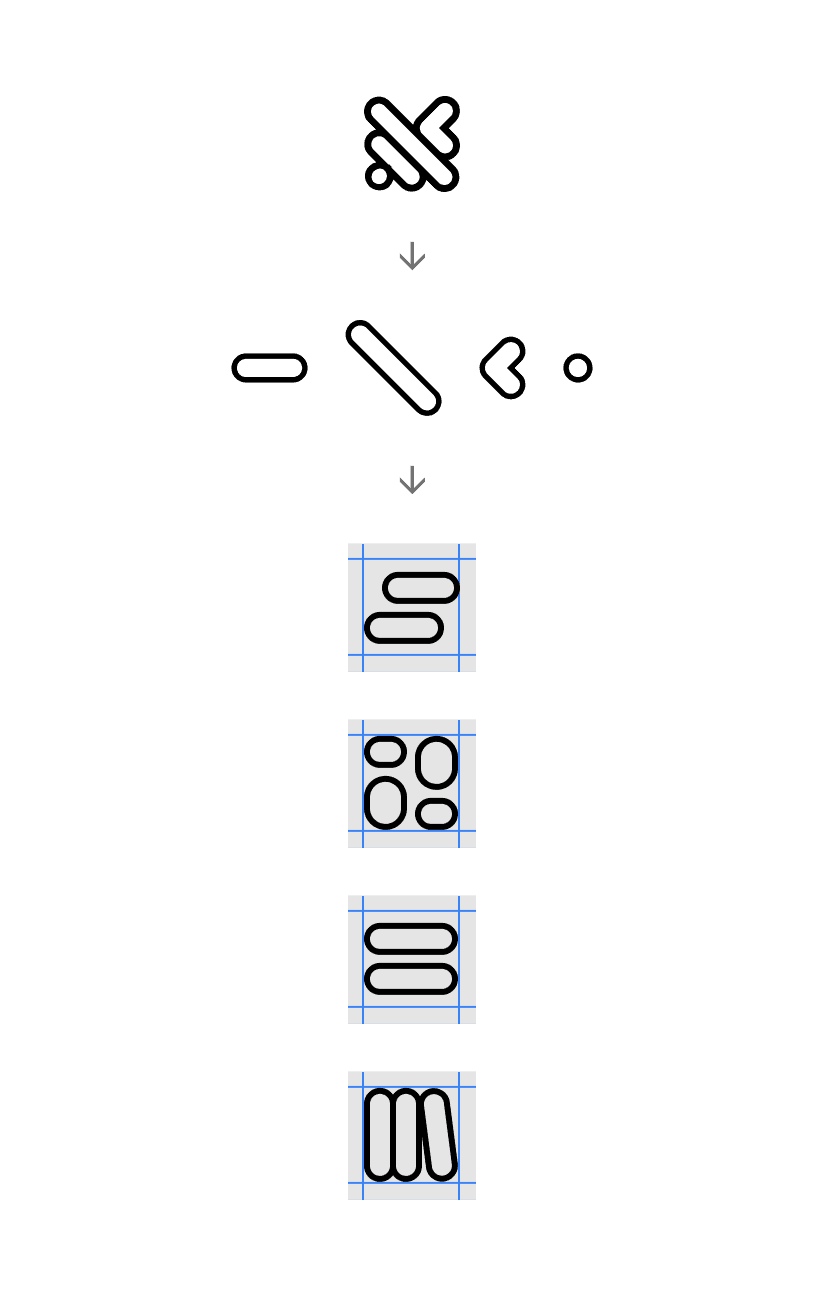 Custom Icons. Constructed from parts of the logo emphasise that all data work can be accomplished within a single app.