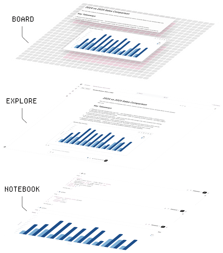 Empower your team and customers to self-serve analytics with AI, python notebooks, and context you trust.