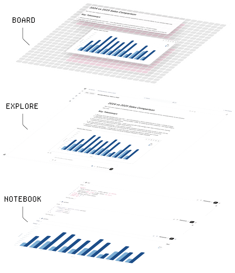 Data teams and AI love notebooks, so do we, but jupyter notebooks don't work for AI analytics. Our python notebooks fix that and power every output, interface, and interaction.